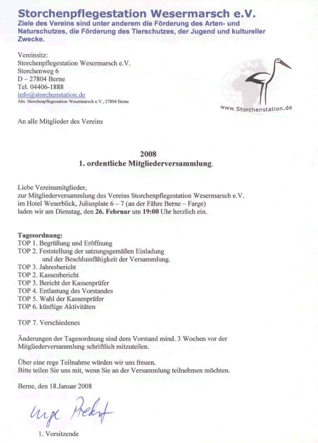 Aktuelles aus dem Verein Storchenpflegestation Wesermarsch e.V.